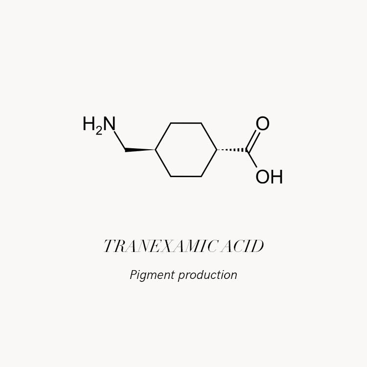 Aqua, Propanediol, Glycerin, Niacinamide, Azelaic Acid, Tranexamic Acid, Sodium Hydroxide, Dimethylsulfone, Panthenol, Usnea Barbata (lichen) Extract, Zinc Pca, Sodium Hyaluronate, Ascorbic Acid, Copernica Cerifera Cera, Retinol, Ectoin, Allantoin, Aloe Barbadensis Leaf Extract, 1,2-Hexanediol, Caprylyl Glycol, Ferulic Acid, Xanthan Gum, Tocopherol, Glutathione, Sorbitol, Cucumis Sativus Fruit Extract, Sorbitan Caprylate, Capryloyl / Caproyl Methyl Glucamide, Chlorella Vulgaris Extract, Salix Alba Bark Extract, Phenoxyethanol, Potassium Sorbate, Gold, Lactic Acid, Helianthus Annuus Seed Oil, Sodium Cocoamphoacetat
